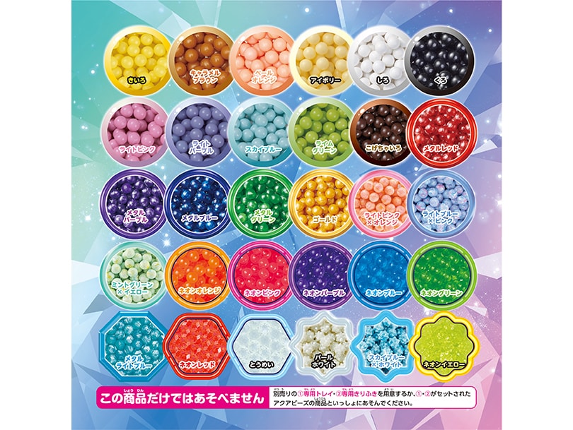 ※こちらの商品はビーズのみの商品です。別売りのアクアビーズ専用トレイと専用きりふき、またはそれらがセットになったアクアビーズ商品と一緒にお楽しみください。