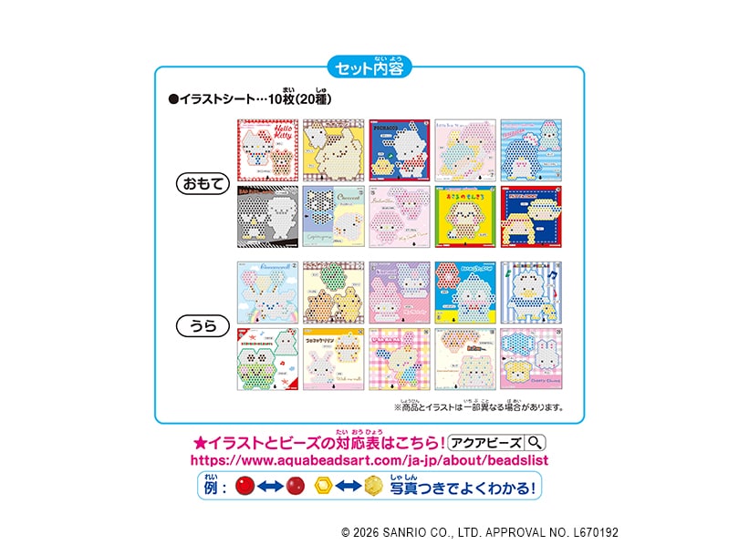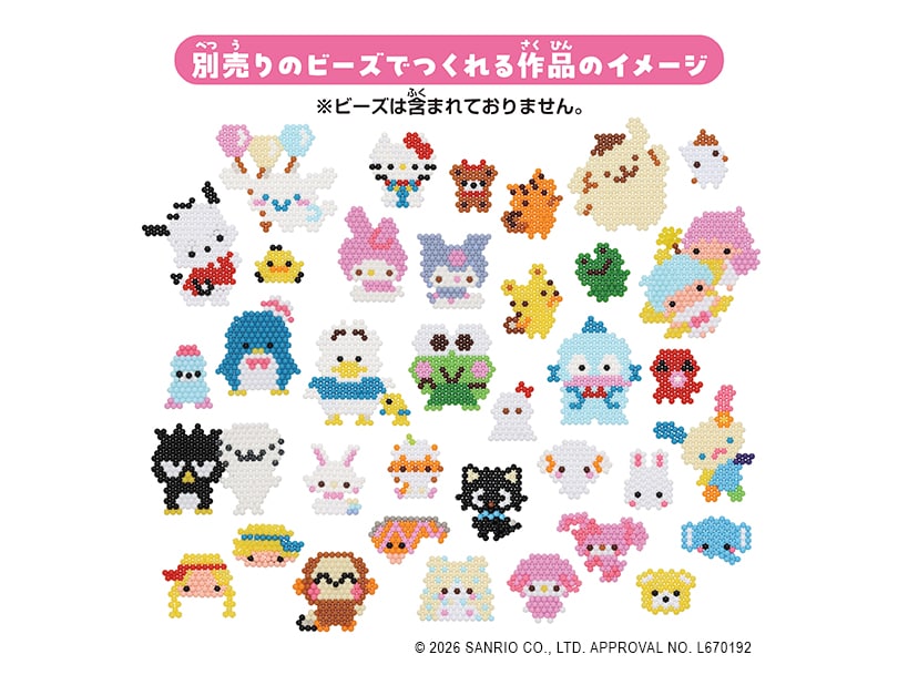 ※こちらの商品はイラストシートのみの商品です。 別売りのビーズ、専用トレイ、専用きりふき、またはそれらがセットになったアクアビーズ商品と一緒にお楽しみください。