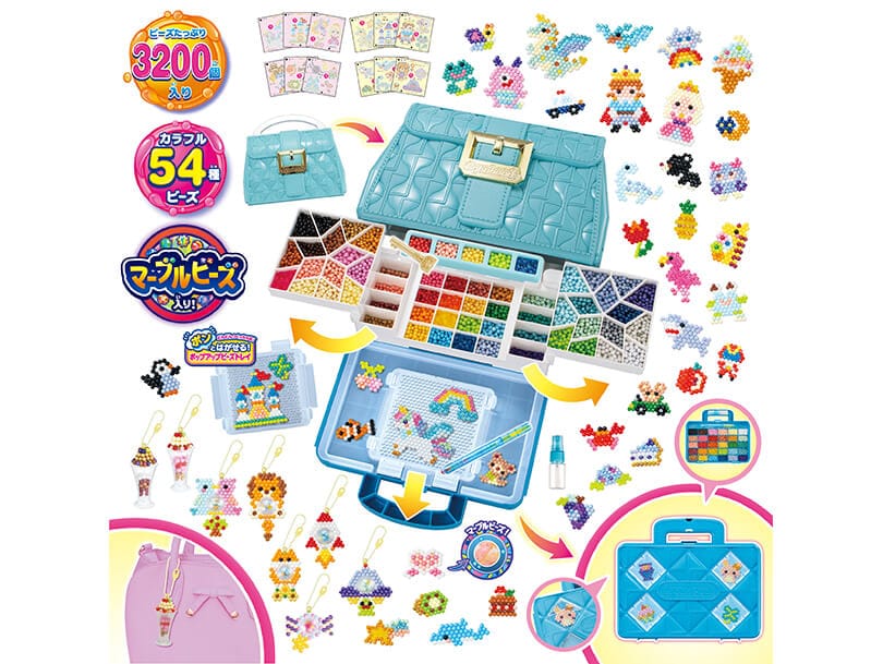 - ●ビーズ3200個・54種入りの大ボリューム!新登場のマーブルカラーのビーズをふくむ、カラフルなまるビーズ・キラキラビーズ・ポリゴンビーズ・スタービーズがいっぱい入っています。